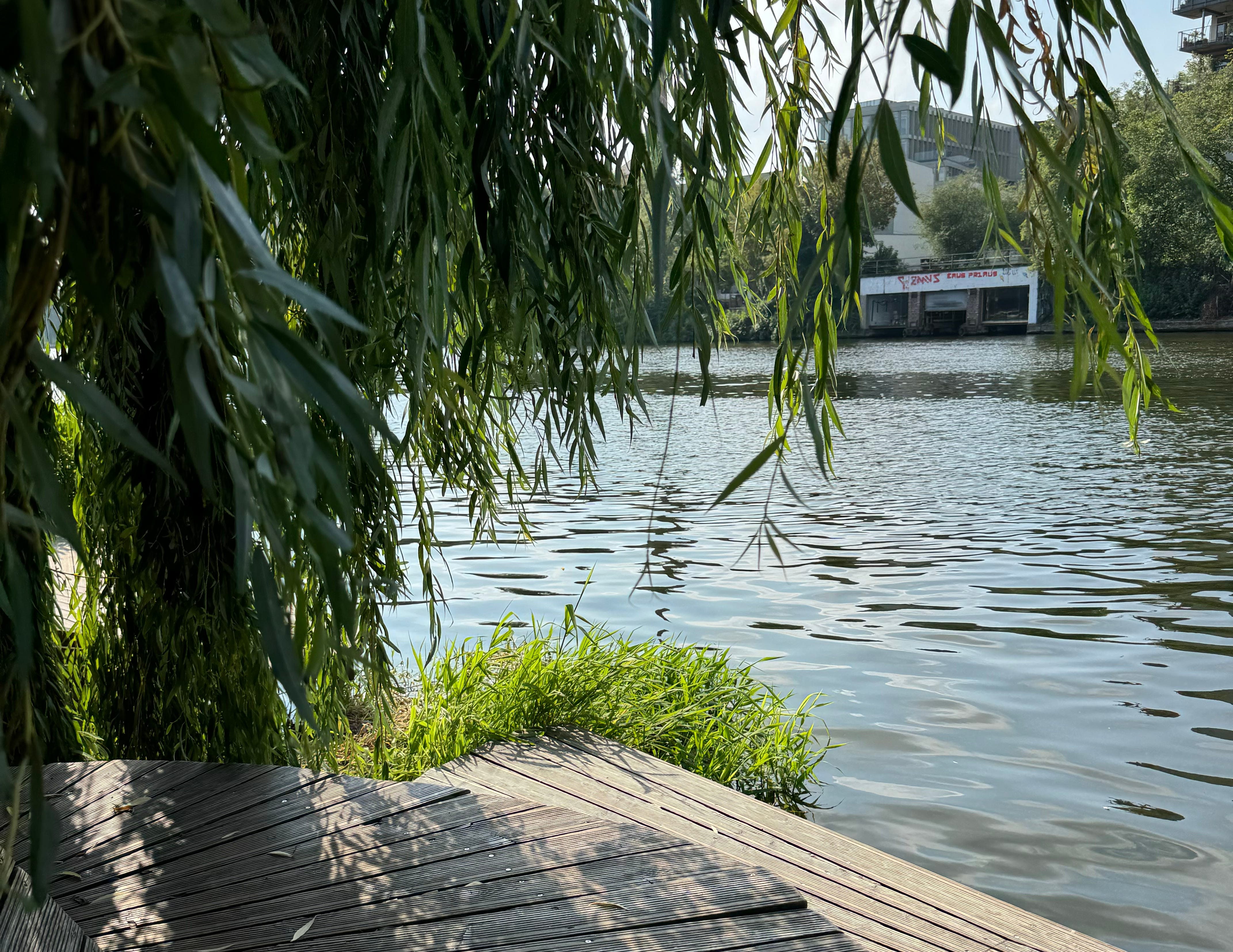 In the second week of September, I spent my Tuesday morning next to the Spree — the river that runs through Berlin. The sun was warm, offsetting the chill from the strong breeze. I sat underneath a willow tree on one of the many wooden seats at Holzmarkt 25, a park/cultural center on the east side.